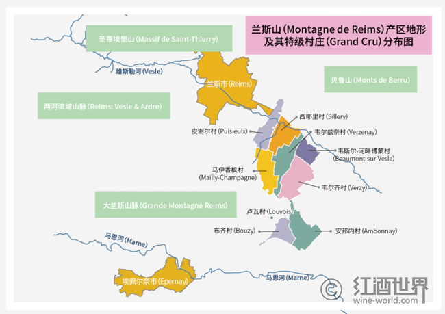蘭斯山產區9個特級村莊分布圖如下所示: