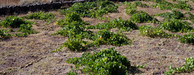該島大多數(shù)葡萄園都位于該島的南部和西南部,地處由火山噴發(fā)而形成的火山巖和沙質(zhì)土壤中,其水分和有機物的含量幾乎為零,因此可有效避免葡萄根瘤蚜(Phylloxera)的入侵。為了保護園內(nèi)樹藤與果實免受當(dāng)?shù)氐膹婏L(fēng)吹襲,葡萄種植者們將藤枝修剪成低矮的簍子形狀,使葡萄在其內(nèi)側(cè)生長。然而,海風(fēng)能夠促進空氣的流通,防止葡萄樹滋生疾病與腐爛,從而維持葡萄的健康生長。