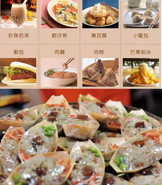 臺灣美食融合閩南、潮州、客家和日本的煮食風格,單單是臺北,已有超過20條著名的小食街。一流的掃街小食如蚵仔煎、鹽酥雞、牛肉面和鹵肉飯等,深受全球游客歡迎!