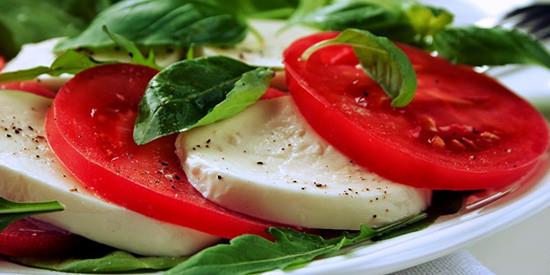 卡普瑞沙拉(Insalata Caprese)的制作非常簡單。只需要準(zhǔn)備好水牛芝士(buffalo mozzarella)、羅勒(basil)、西紅柿和橄欖油即可。第一步先將西紅柿切片,將水牛芝士也切成差不多的薄片;第二步將西紅柿片和芝士片交替落成“三明治”,然后撒上羅勒;最后將橄欖油澆在西紅柿芝士上,簡單又美味的卡普瑞沙拉就做好了。