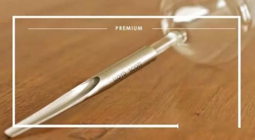 這款紅酒杯的上端設(shè)計(jì)和大家日常使用的紅酒杯相同,只不過(guò)在下端進(jìn)行了創(chuàng)新設(shè)計(jì)。在酒杯的底部,并不是傳統(tǒng)底座式設(shè)計(jì),而是采用了類似于針尖的形狀。