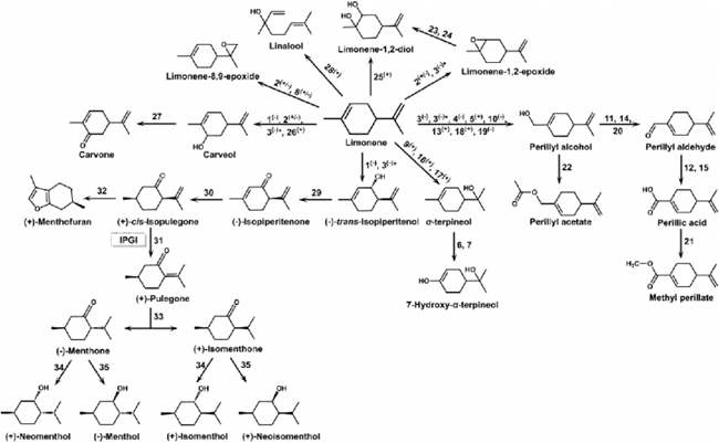 葡萄與葡萄酒中單萜類化合物能夠賦予葡萄與葡萄酒濃郁獨特的芳香,如玫瑰、桂花、鳳梨及蜂蜜等香味。檸檬烯是葡萄與葡萄酒中天然存在的具有代表性的單帖香氣物質(zhì)之一,在微生物作用下能夠衍生出數(shù)十種單萜類化合物。闡釋檸檬烯生物合成途徑及衍生化過程有助于理解葡萄與葡萄酒萜烯類香氣物質(zhì)的形成機制,為利用代謝工程進行葡萄育種研究,以及采用工程菌調(diào)控葡萄酒品種香氣物質(zhì)組成開展前瞻性研究提供理論依據(jù)。此外,利用合成生物學和代謝工程策略構(gòu)建高效檸檬烯及其衍生物微生物細胞工廠能夠為葡萄園廢棄物高值化再利用,實現(xiàn)葡萄酒產(chǎn)業(yè)提質(zhì)增效提供新思路。
