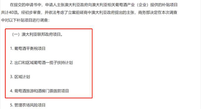 選取出口數量占前4位的公司作為反補貼調查對象,分別為富豪葡萄酒產業酒商有限公司、卡塞拉酒業私人有限公司、澳大利亞天鵝釀酒有限公司、保樂力加釀酒師有限公司。