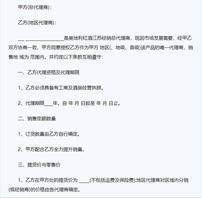 現(xiàn)在紅酒行業(yè)的發(fā)展前景比較好,投資做紅酒代理生意的人自然也非常多。那么投資的話,簽署代理合同的時候應(yīng)該怎么寫呢?又有沒有什么注意事項呢?下面就跟小編一起來了解下簽署紅酒代理合同范本大全和注意事項吧!